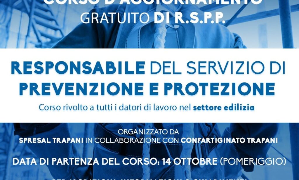 Il corso è organizzato dallo Spresal Trapani in collaborazione con Confartigianato Imprese Trapani.